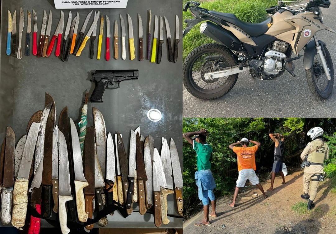 Durante operação realizada nesta semana, policiais militares da 35ª Companhia Independente de Polícia Militar (CIPM) intensificaram o policiamento com o objetivo de prevenir e combater atividades ilícitas. Durante as abordagens, foram apreendidos diversos tipos de armas brancas e um simulacro de arma de fogo.