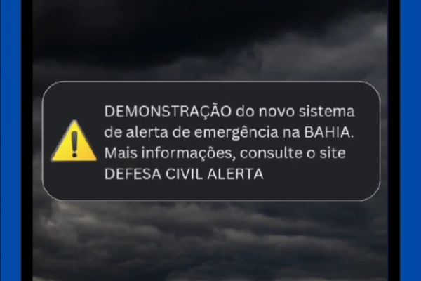 Os habitantes dessas cidades vão receber o alerta de nível severo (mensagem) e extremo (sonoro). As mensagens a serem enviadas são: DESCRIÇÃO DO ALERTA: ‘Demonstração do Defesa Civil Alerta’; RECOMENDAÇÕES A POPULAÇÃO: ‘Não é necessária nenhuma ação de autoproteção’; MENSAGEM SMS/CELLBROADCAST: Demonstração do novo sistema de alerta de emergência na Bahia. Desde 4 de dezembro de 2024, todos os estados das regiões Sul e Sudeste estão aptos a utilizar a tecnologia.