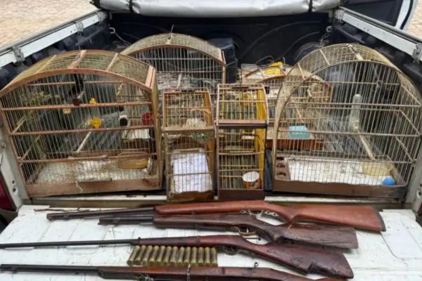 Ao todo, foram apreendidas cinco espingardas artesanais, 13 munições calibre 16 e quatro aves nativas: um chorão (Sturnella superciliaris), um casal de papa-capim (Sporophila nigricollis) e um curió (Oryzoborus angolensis).