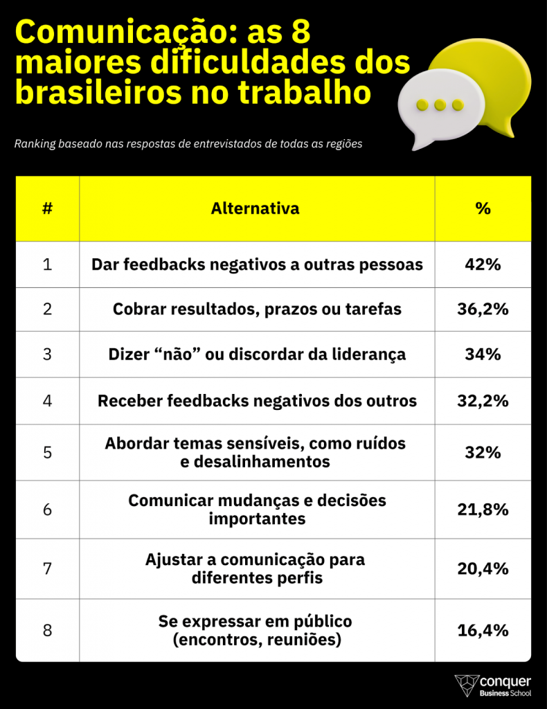 Dar feedback negativo ainda é um dos maiores desafios no ambiente corporativo. Pesquisa da escola de negócios Conquer mostra que 42% dos brasileiros admitem dificuldade ao criticar, avaliar ou apontar melhorias no trabalho de outra pessoa.