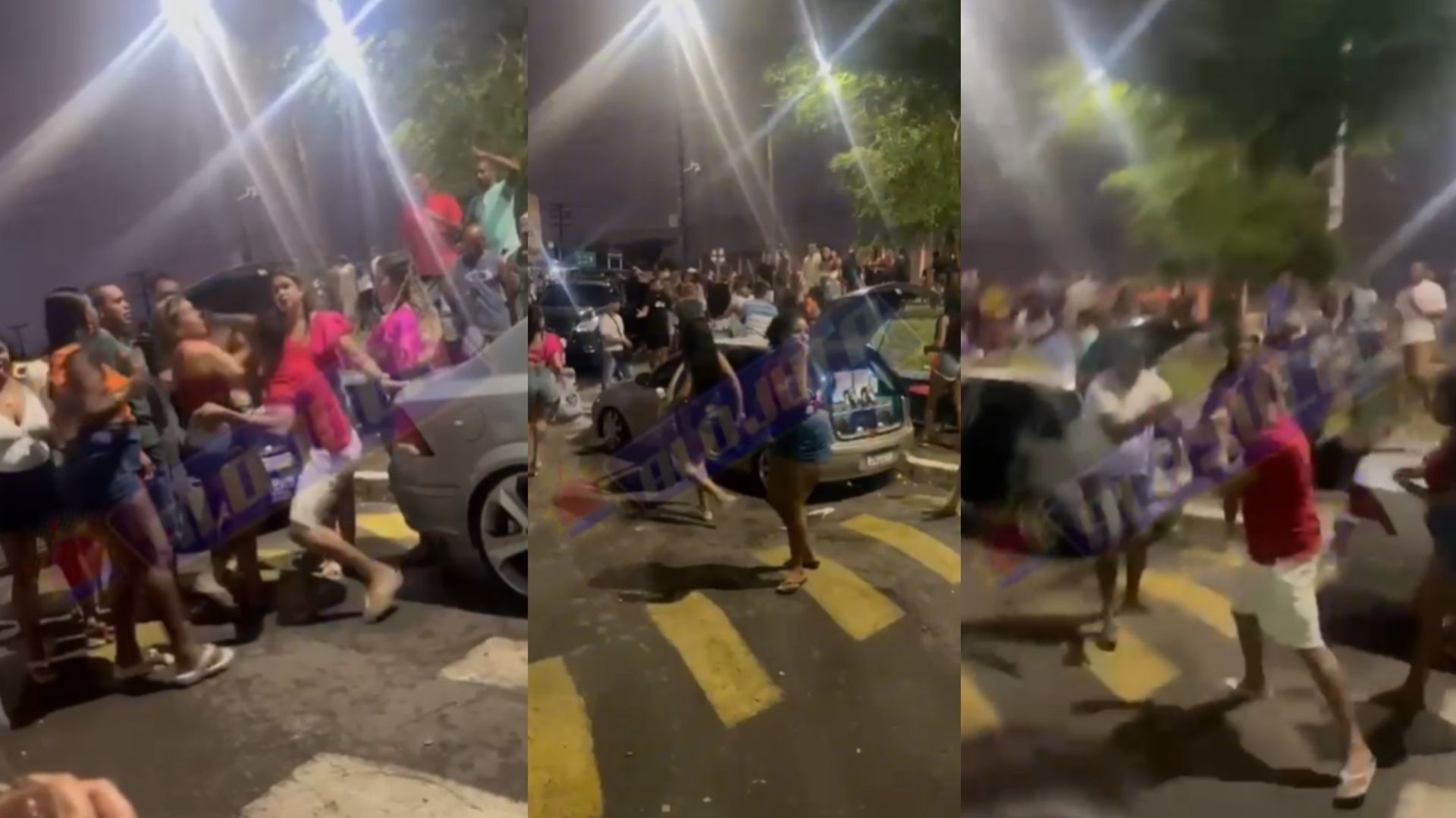 Em imagens enviadas para o site Alô Juca, é possível ver o momento em que homens e mulheres trocam socos e empurrões. Ainda não há informações sobre o que teria motivado a confusão.
