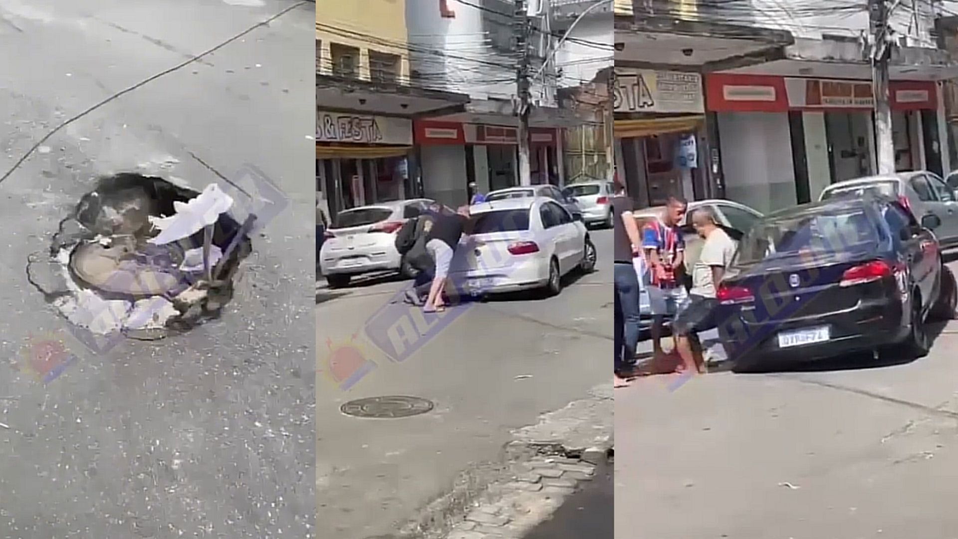 Vídeos enviados para nossa redação na manhã desta quarta-feira (31), mostram pelo menos três carros que ficaram presos no buraco e precisaram ser empurrados.