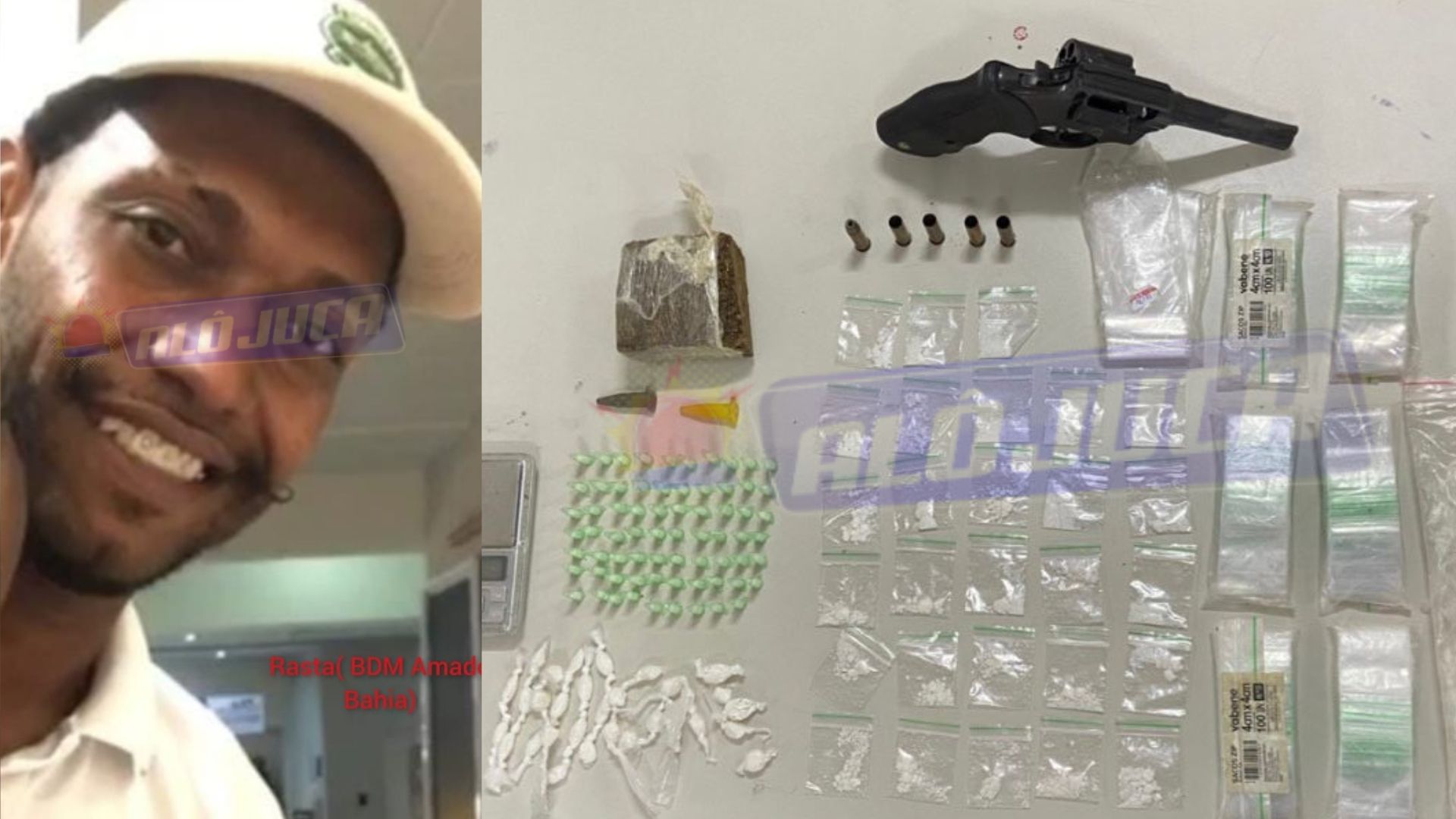 Com o suspeito, a polícia apreendeu um revólver calibre .38 com a numeração raspada, uma munição intacta e quatro cartuchos deflagrados. Também foram encontrados 69 pinos e 60 porções de cocaína, meia barra de maconha e diversas embalagens plásticas para acondicionamento de drogas. Todo o material foi encaminhado para a 25ª Delegacia Territorial de Dias D’Ávila.