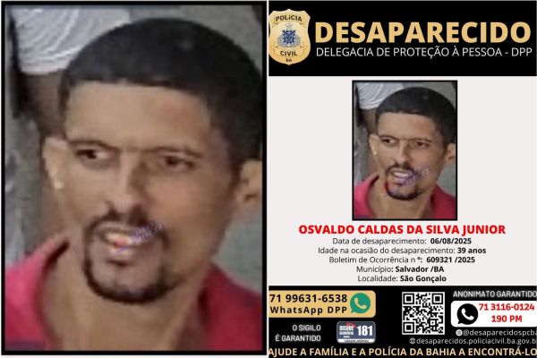 Osvaldo Caldas da Silva Júnior, de 39 anos, desapareceu no dia 6 de agosto. A família diz que ele foi ao médico, em Brotas, e não retornou para casa, em São Gonçalo do Retiro.