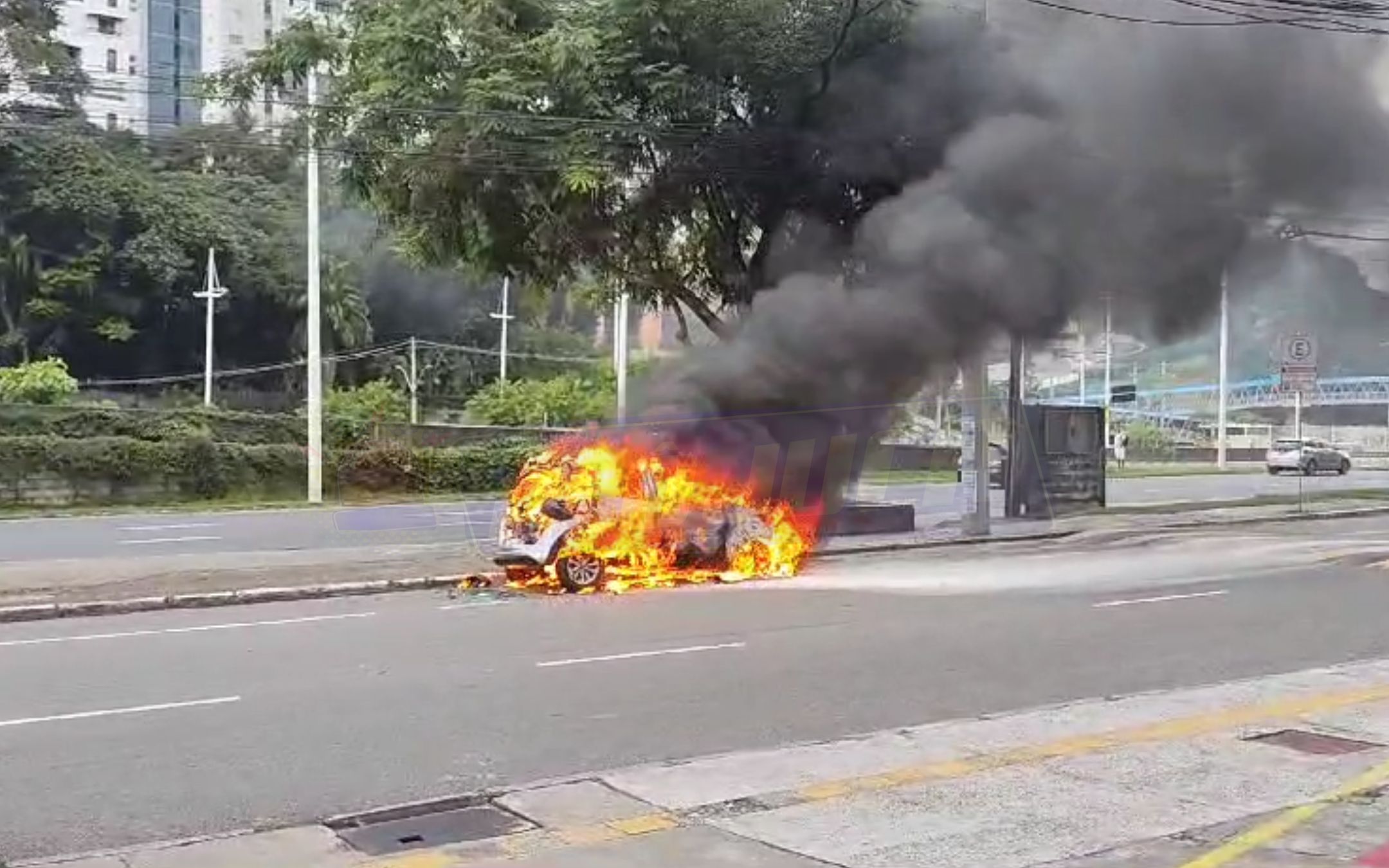 Um carro ficou em chamas na manhã desta quinta-feira (27), na Avenida Antônio Carlos Magalhães, em Salvador. Em um vídeo enviado ao site Alô Juca, é possível ver o veículo pegando fogo, no sentido Centro da cidade.