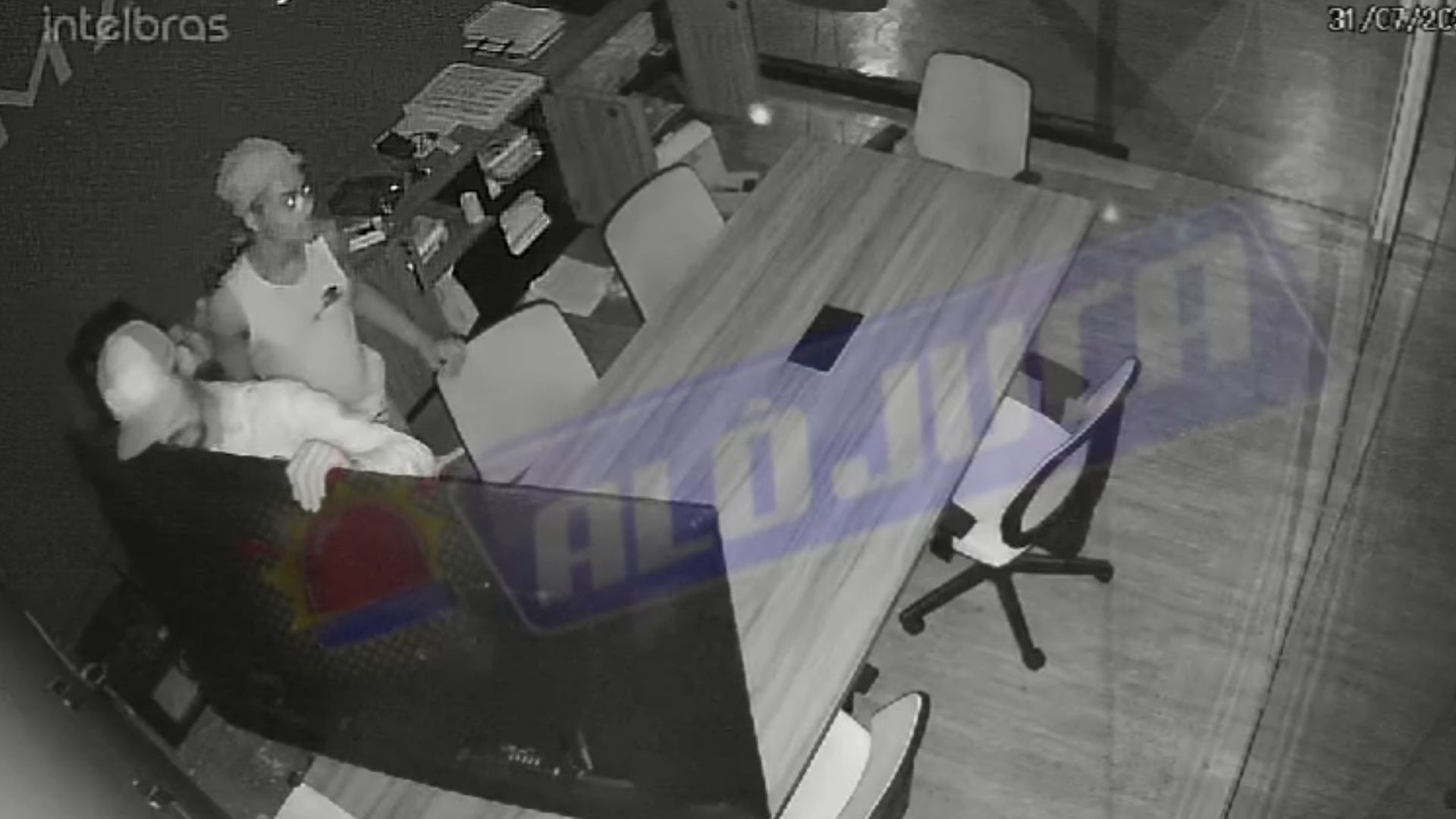 Em imagens enviadas ao site Alô Juca, é possível ver o momento em que a dupla criminosa chega ao estabelecimento e furta o equipamento.
