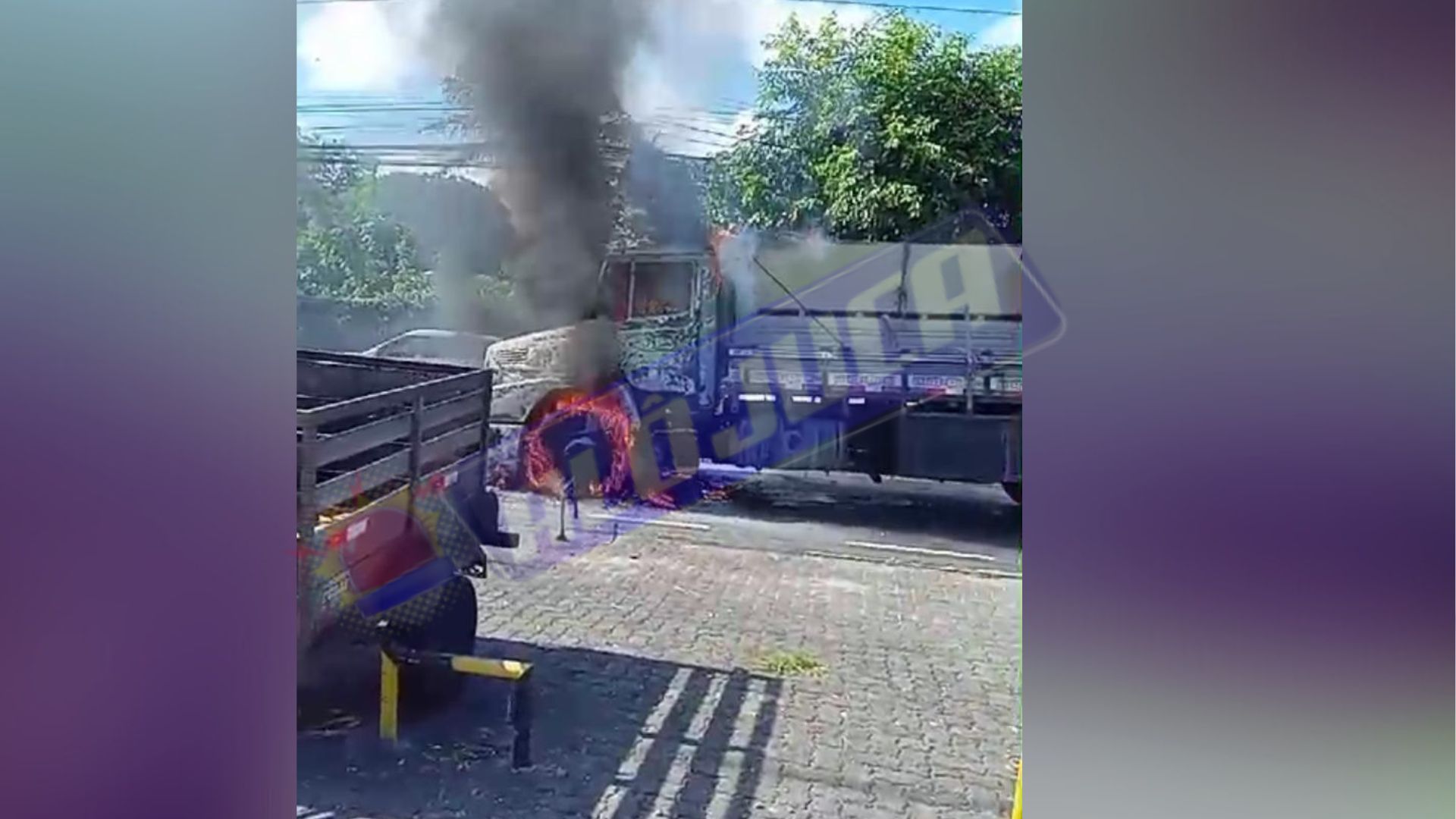 Um caminhão carregado de placas de MDF pegou fogo na Avenida São Rafael, no início da tarde desta quinta-feira (11/07). Imagens enviadas por fontes do site Alô Juca mostram várias pessoas tentando retirar a carga da traseira, enquanto a cabine é consumida pelas chamas. Na gravação, é possível perceber também o desespero do proprietário do caminhão enquanto as chamas consomem o veículo.