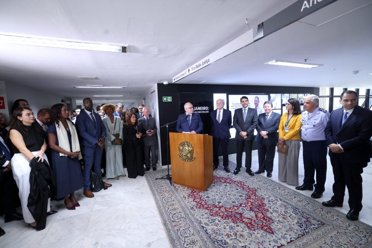 Nos últimos três anos, o STF responsabilizou 1.399 pessoas pelos atos antidemocráticos, incluindo os integrantes dos núcleos cruciais, como o ex-presidente Jair Bolsonaro (PL). Estiveram presentes no evento o advogado-geral da União Jorge Messias, o presidente da Ordem dos Advogados do Brasil Beto Simonetti, o ministro da Justiça Ricardo Lewandowski e outras autoridades.