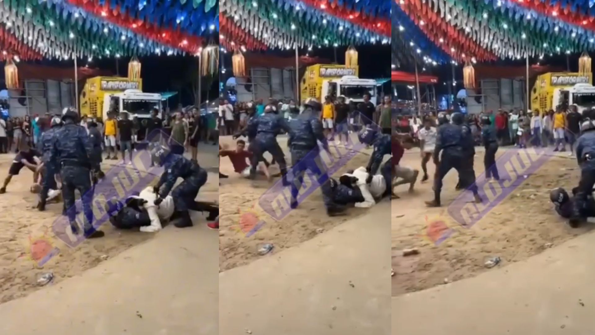 Guardas civis foram flagrados agredindo dois homens, na noite do domingo (23), durante uma festa, em Conceição da Feira.