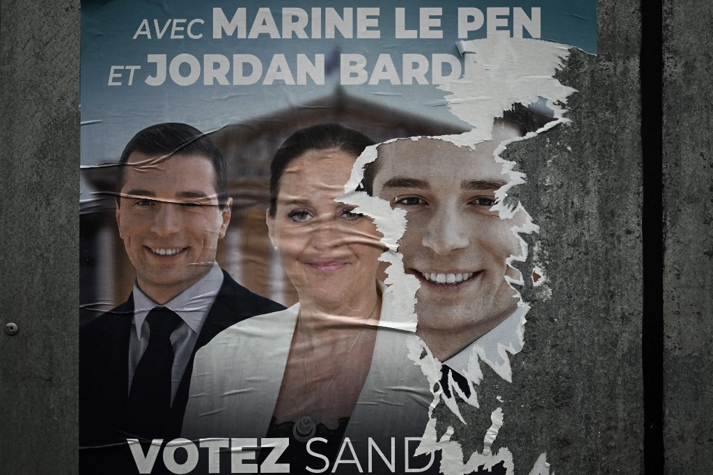O ultradireitista Reagrupamento Nacional (RN), de Marine Le Pen, e seus aliados venceram o primeiro turno em 30 de junho com um terço dos votos e podem, segundo as projeções, alcançar uma maioria absoluta de 289 deputados.