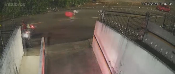 O assalto aconteceu na noite desta quarta-feira (17), na rua Laura Costa, bairro Vila Laura. Uma câmera de segurança registrou o momento exato do assalto. Dois criminosos chegaram em uma moto, renderam o entregador delivery e levaram a motocicleta do trabalhador. A vítima ainda corre com a bag nas costas.
