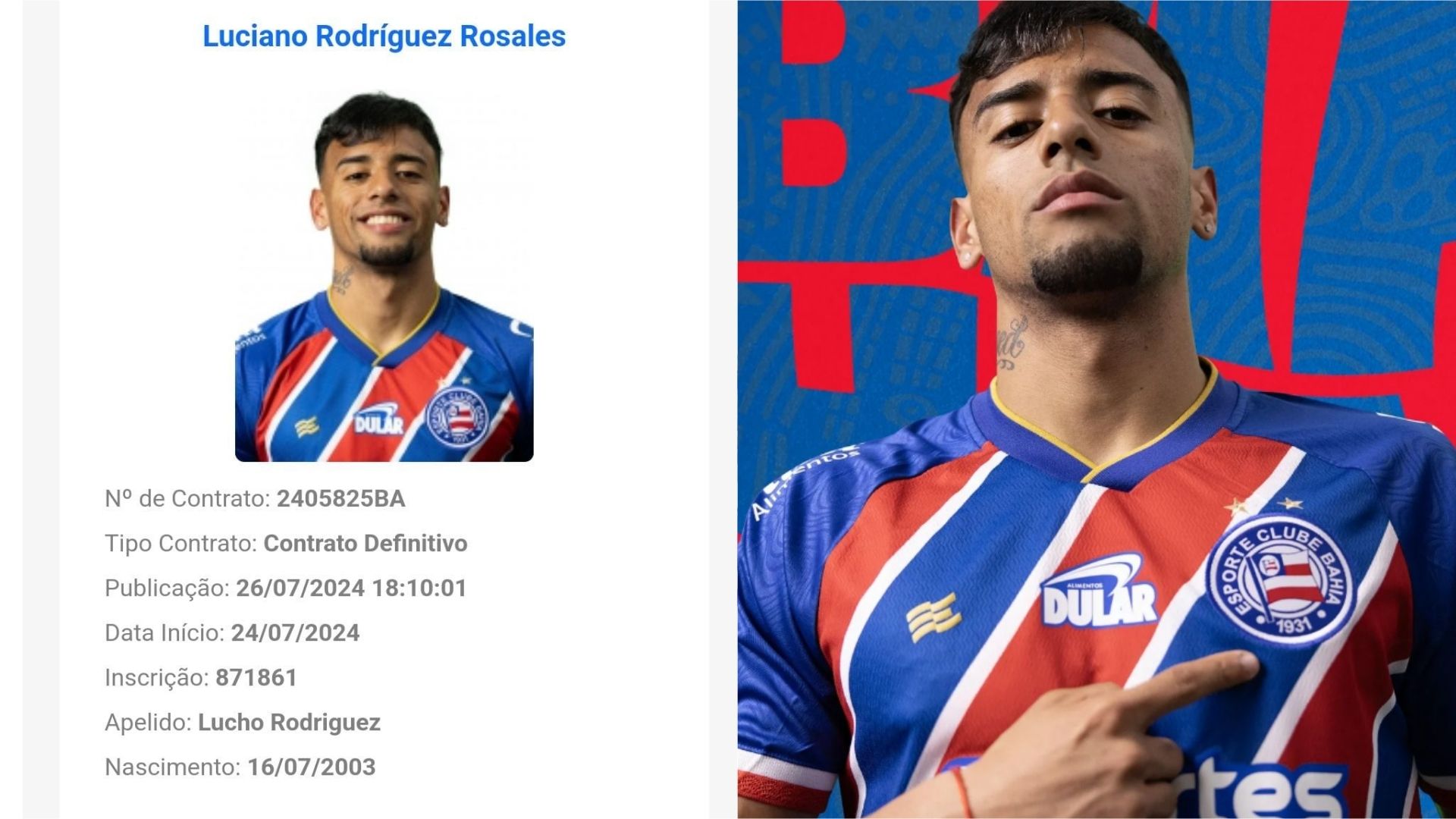 Chegou ao fim a longa novela envolvendo a contratação do atacante Luciano Rodriguez. O nome do jogador finalmente apareceu no Boletim Informativo Diário da CBF (BID) e o atleta é oficialmente jogador do Esporte Clube Bahia. A publicação saiu às 18h10 desta sexta-feira (26/07).