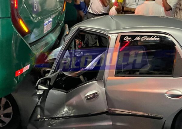Um acidente envolvendo um ônibus e um carro de passeio causou um extenso congestionamento na rua Manoel Rufino, no bairro do Arenoso, em Salvador, na noite desta sexta-feira (23).