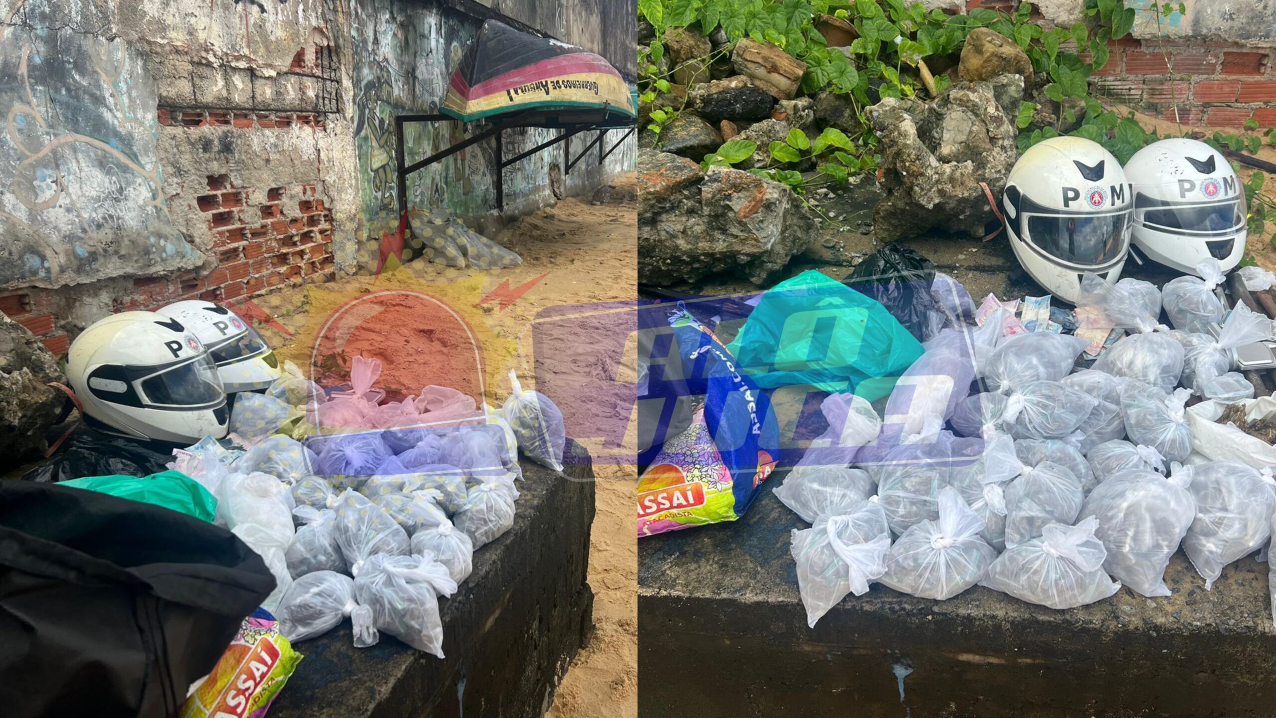 Dois homens tentaram fugir pela água do mar, mas, ainda assim, foram alcançados pelos policiais. Maior parte da droga estava nas mãos dos criminosos. O restante foi encontrado enterrado na areia da praia.