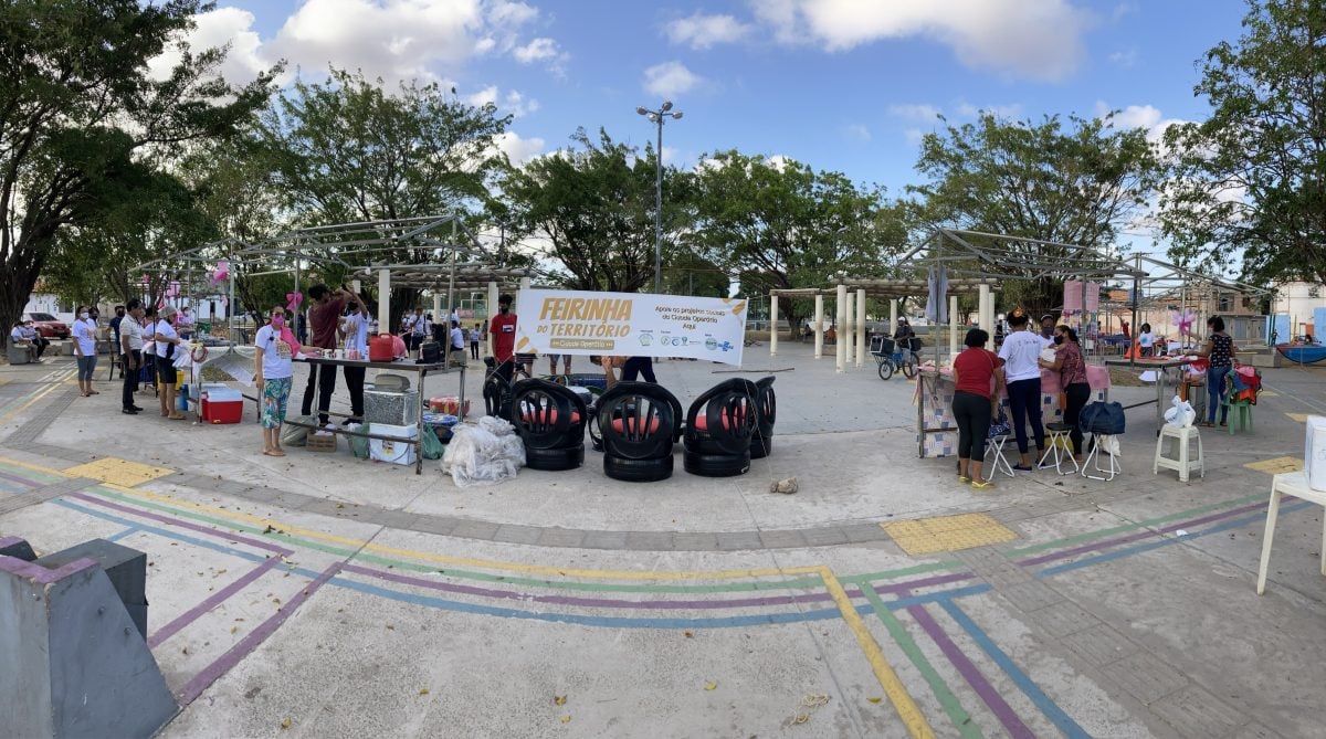 Criada em 2022, a Feirinha do Território surgiu como alternativa para empreendedores que perderam renda durante e após a pandemia de Covid-19. A iniciativa reúne entre 20 e 25 expositores por edição, com oferta de alimentos, roupas e artesanato produzidos localmente.